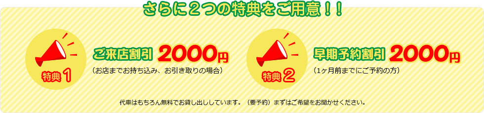 車検や修理、お乗換えの納車までの間などお客様のお車をお預りしている時は、代車を無料でお貸ししています。